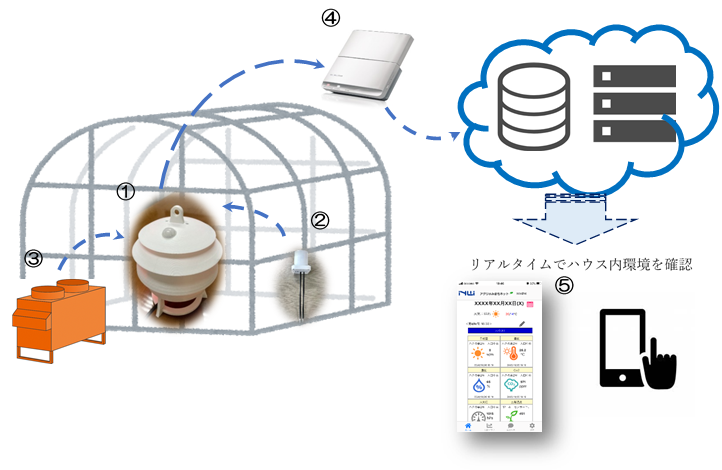 | ① | 温度 湿度 CO2濃度 気圧 日射量 |